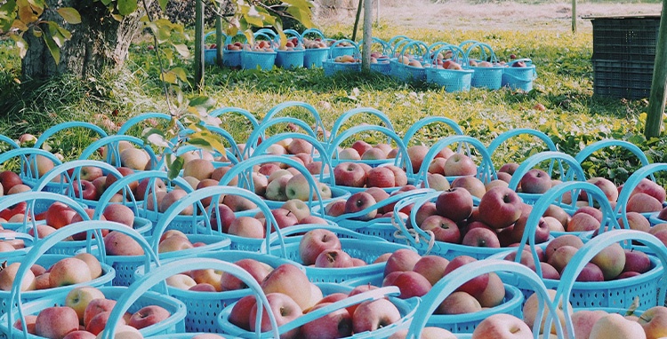 長野駅から車で30分ほど走ったところにある善光寺平の北部に位置する豊野町。四方を2〜3000m級のアルプスなどの山々に囲まれた盆地では、葡萄や栗、そして林檎の栽培が盛んな地域だ。12月のカラッとした晴れの日に、思わず車窓を開けて、圧倒的な大きさで眼前に迫ってくる北アルプスを横目にみながら車を走らせると、あたり一帯が、真っ赤な実をつけたリンゴの木々が立ち並ぶ、広大な農園地帯に突入した。ラジオの音と忙しなく作業をする農家の方々の元気な声が一帯で聞こえてくる。そう、今は林檎収穫の最盛期の最後の時期だ。今回取材を受けてくださった「宮下果樹園」の宮下直也さんは、120年続く林檎農家の5代目。AIGLEの取材で、ひとつの作物を先祖代々で継承している農家さんを取材するのは今回が初めてだ。豊かな自然環境に恵まれ、信州りんごの名産地として知られている豊野町で、「シナノスイート」や「シナノゴールド」などの高品質なリンゴを栽培し、新たに手作りのジャムやシードルなどの加工品の展開へも挑戦し、林檎の魅力を発信している宮下さん。果樹農家という家業を継承するということ、そして新たな形で未来へ繋いでいくということ、林檎とそこに込めた思いについて話を聞いてきた。